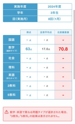 今回の北辰の数学の自己採点の点数は、 前回より高い! 学校選択の自己採点の平均は、63点! これを去年の北辰8回の学校選択に当てはめると なんと偏差値70以上だ! まだ、自己採点の点数の報告は、 半数ほどだけどね。 それでも、この点数は、かなり高いと…