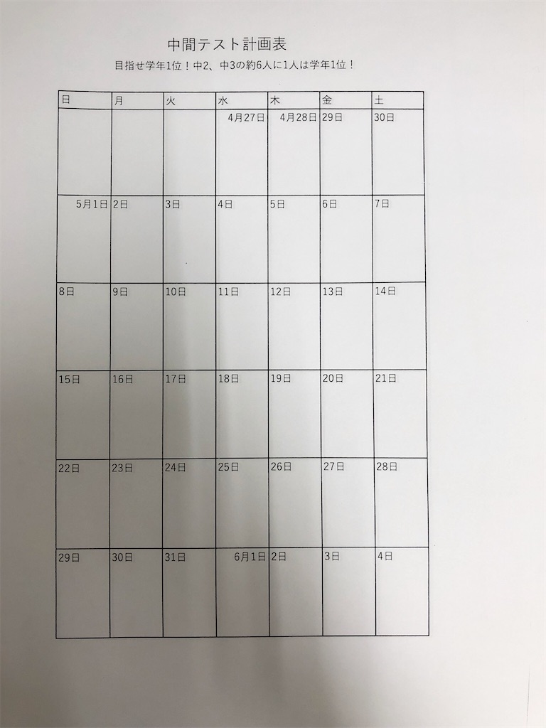 中間テストの勉強の計画を立ててもらった。